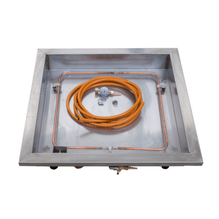 Apparecchiatura funzionante a gas GPL per simulazione di fuochi per corsi antincendio completa di 4 piedi regolabili, tubo UNI-CIG da 5 metri, riduttore di pressione, valvola di scarico acqua e valvola di sicurezza con termocoppia.