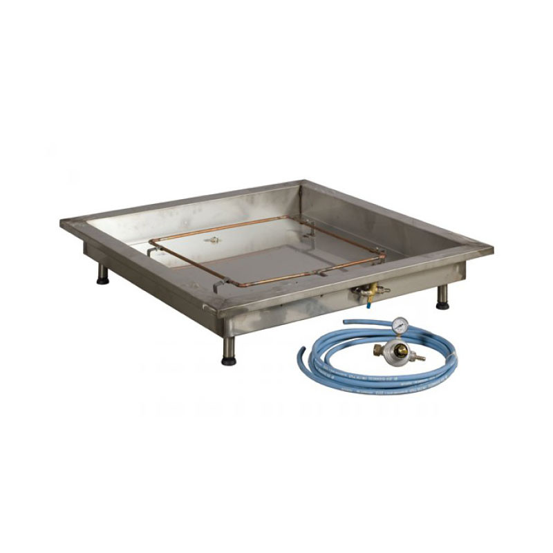 Simulatore di fuoco, indispensabile per effettuare le prove pratiche per l'addestramento del personale all'utilizzo degli estintori. In acciaio inox 304 dim. 910x910x200h