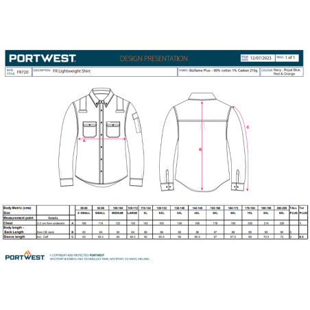 Portwest FR720 - Camicia ignifuga alta visibilita' Arancione o Blu
