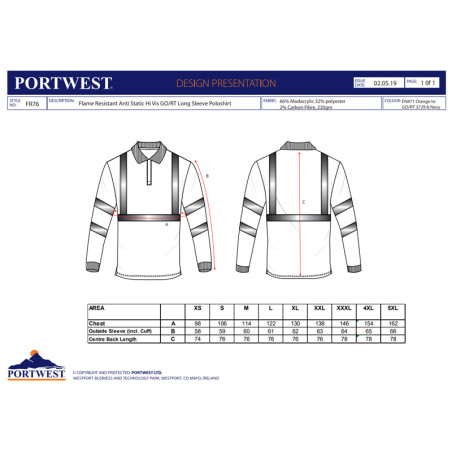 Polo ignifuga RIS Alta Visibilita' - Portwest FR76 OEKO-TEX