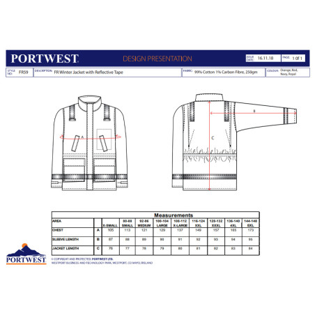 Portwest FR59 - Giacca invernale imbottita FR antistatica con cappuccio OEKO-TEX