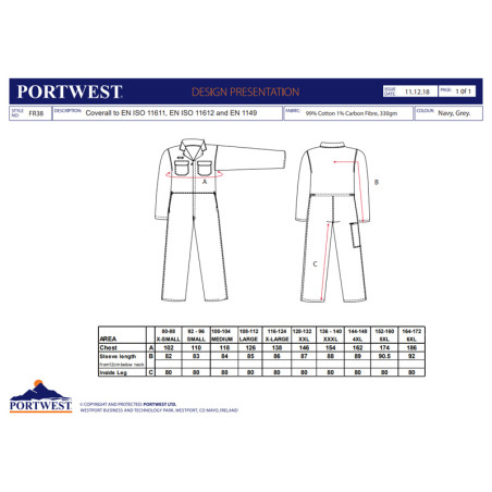 Portwest FR38 - Tuta intera Bizflame Pro OEKO-TEX