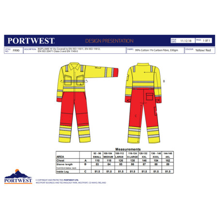 Portwest FR90 - Tuta intera per manutentori ignifuga Alta visibilità OEKO-TEX Bizflame