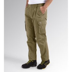 Pantalone cargo estivo, tasche laterali con porta oggetti, regolazione vita con coulisse, costruzione ginocchio ergonomica, tripla cucitura.