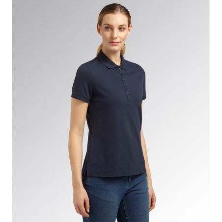 Polo donna manica corta in cotone organico piquet stretch. Vestibilità slim comfort studiata per il mondo del lavoro femminile.