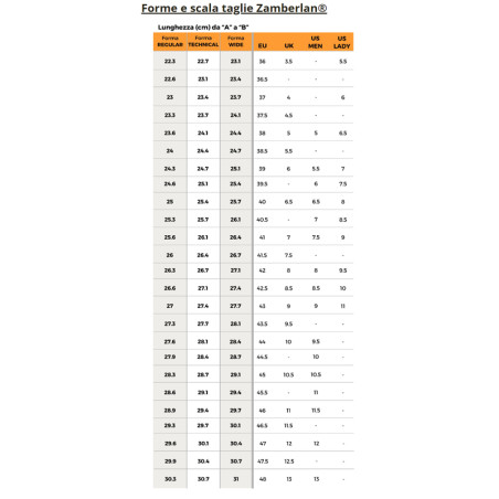 TIPO DI FORMA Zamberlan® Regular