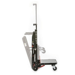 Il MULE LIGHT è una macchina per il trasporto di carichi in spazi interni, ottimizzata per la manovrabilità su piani e scale rettilinee. Compatta e pieghevole, riduce l'ingombro quando non utilizzata. Presenta cingoli in gomma per l'aderenza sulle scale e quattro ruote, due piroettanti, per facilitare la movimentazione su superfici piane. I comandi sono posizionati sull'interfaccia di controllo per una gestione motorizzata semplice da parte dell'operatore.