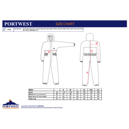 Portwest ST40 - Tuta Monouso Taglie Forti PP con zip e cappuccio 4xl 5xl Microporosa Tipo 5/6 conf. 50pz