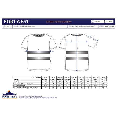 T-shirt Cotton Comfort Taglie forti Hi-Vis 4XL - Portwest S172 OEKO-TEX