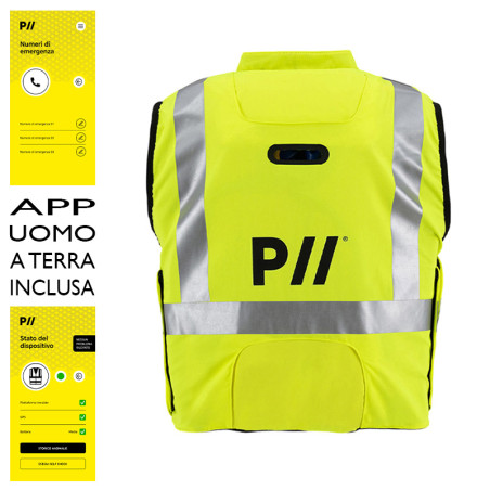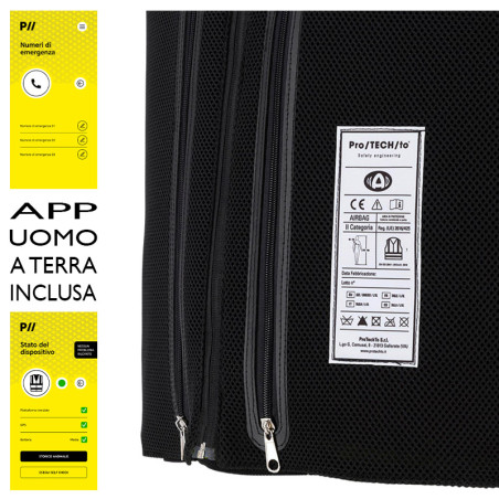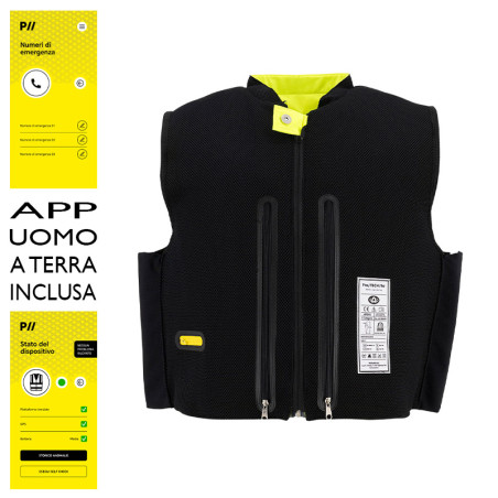 Con l'app UOMO A TERRA INCLUSA per Apple e Android, il gilet Protechto è l'airbag da lavoro più completo sul mercato.