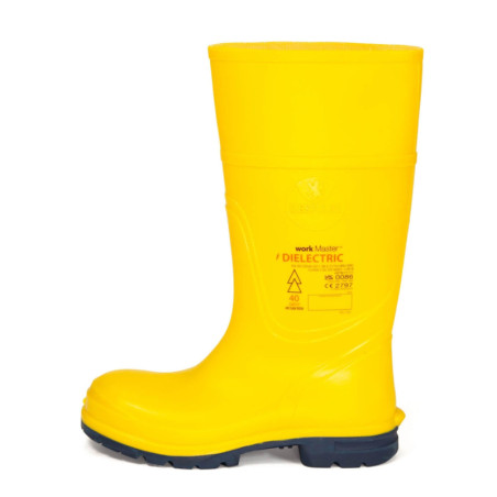 Stivale dielettrico elettricamente isolante con puntale in acciaio integrale e suola in gomma vulcanizzata per una eccellente resistenza allo scivolamento. Lo stivale Workmaster™ Dielectric consente di eseguire lavori sotto tensione fino a 17kV, con ogni stivale testato per 20kV CA, con prova con CC a 50kV opzionale (Classe 2).