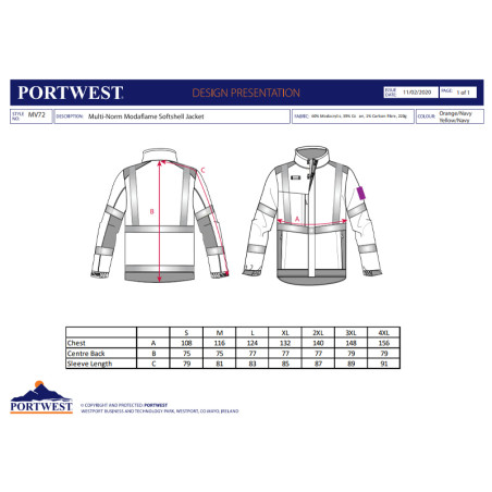 Giacca Softshell Multinorma Arco Elettrico Portwest MV72 giallo o arancione